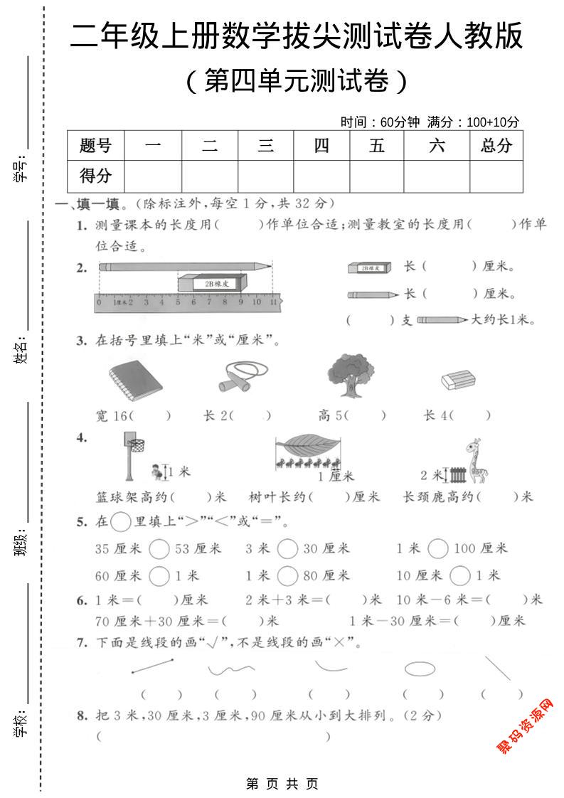 聚码网 二年级 二年级上数学第四单元拔尖测试卷2《人教版》 http://www.appstore168.com/90880.html