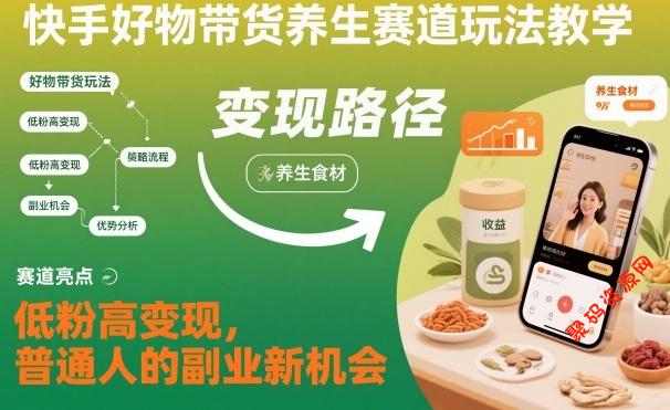 聚码网 带货卖货 快手好物带货养生赛道玩法教学,低粉高变现,普通人的副业新机会 http://www.appstore168.com/91291.html