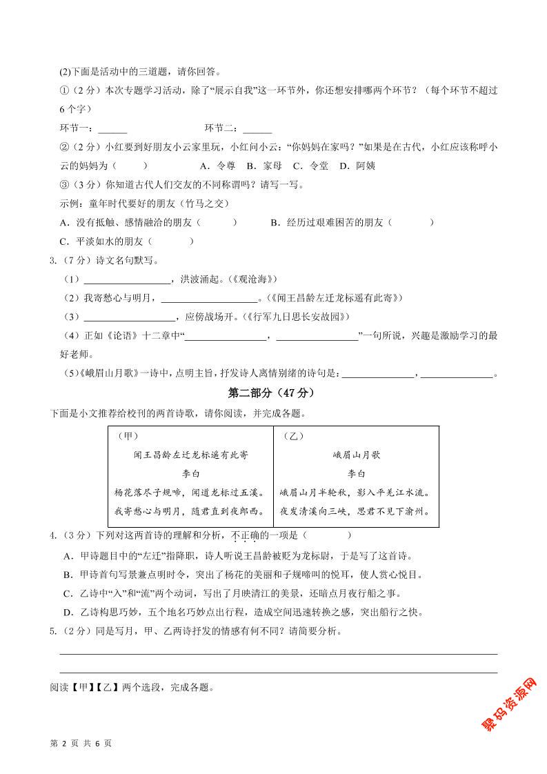 - 七年级上语文期中模拟卷02 2025-11-24
