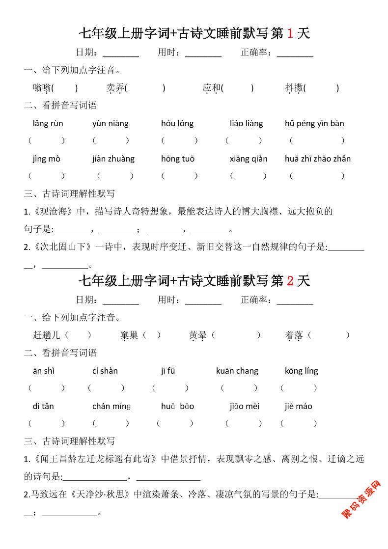 聚码网 七年级 七年级上语文字词古诗睡前默写 http://www.appstore168.com/91475.html