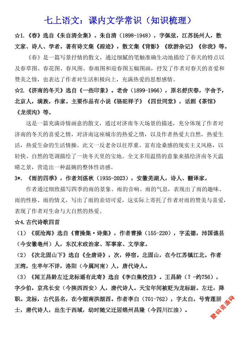 聚码网 七年级 七年级上语文课内文学常识知识梳理 http://www.appstore168.com/91587.html
