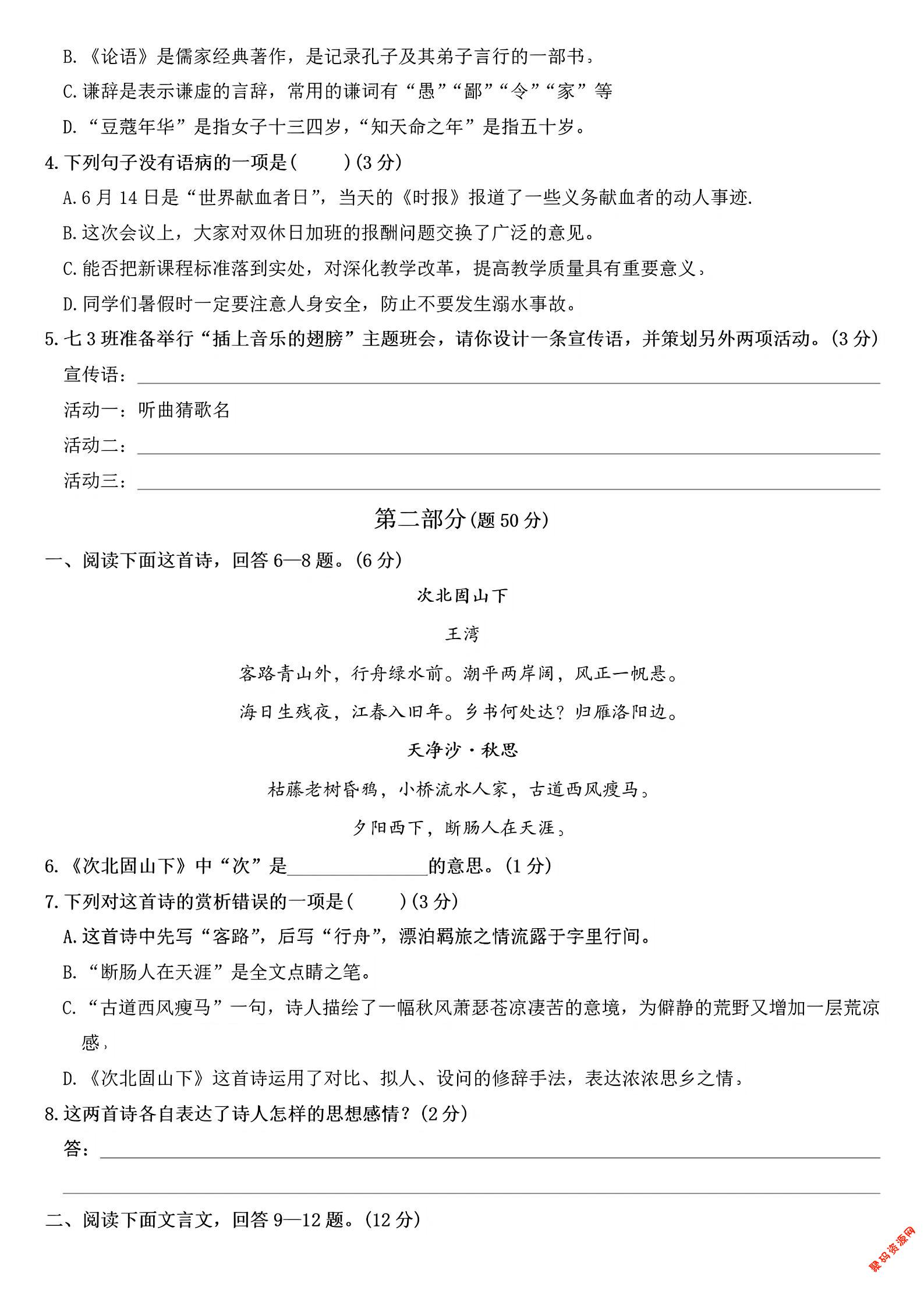 - 新七年级上语文全册【古诗词赏析】含答案 2025-12-10