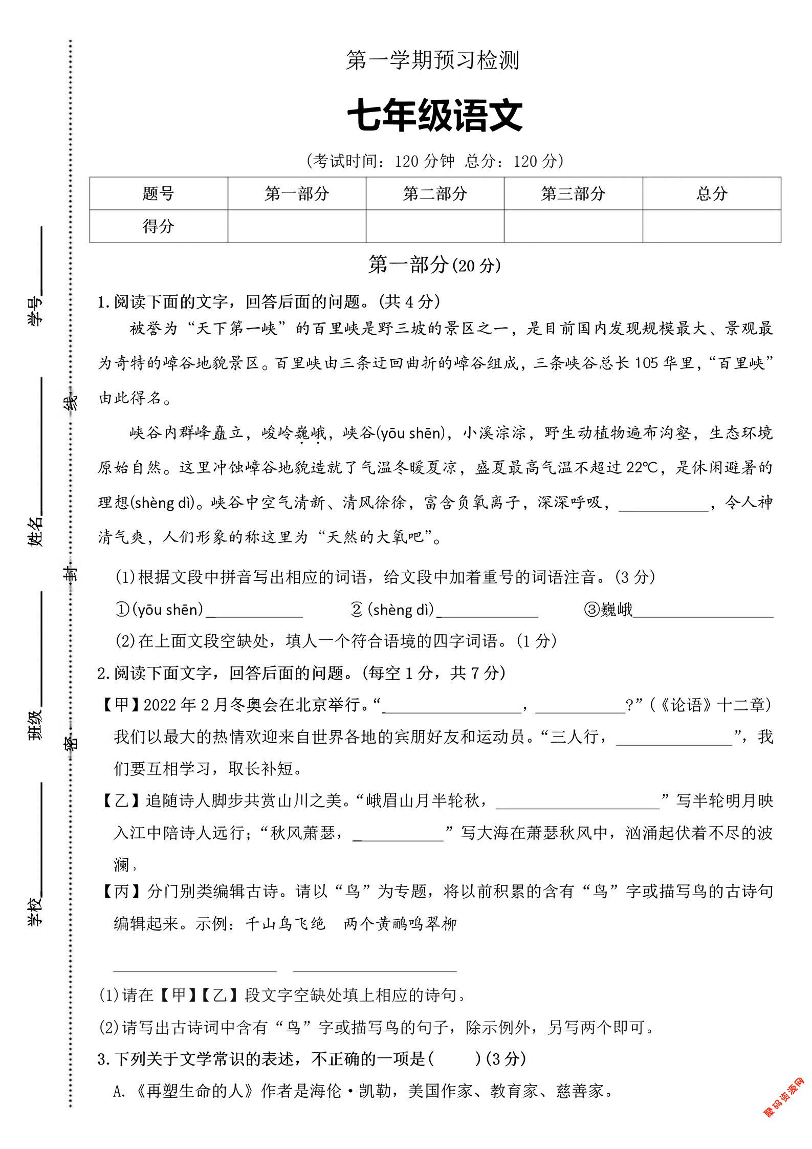 聚码网 七年级 七年级上语文第一学期预习检测 http://www.appstore168.com/91599.html