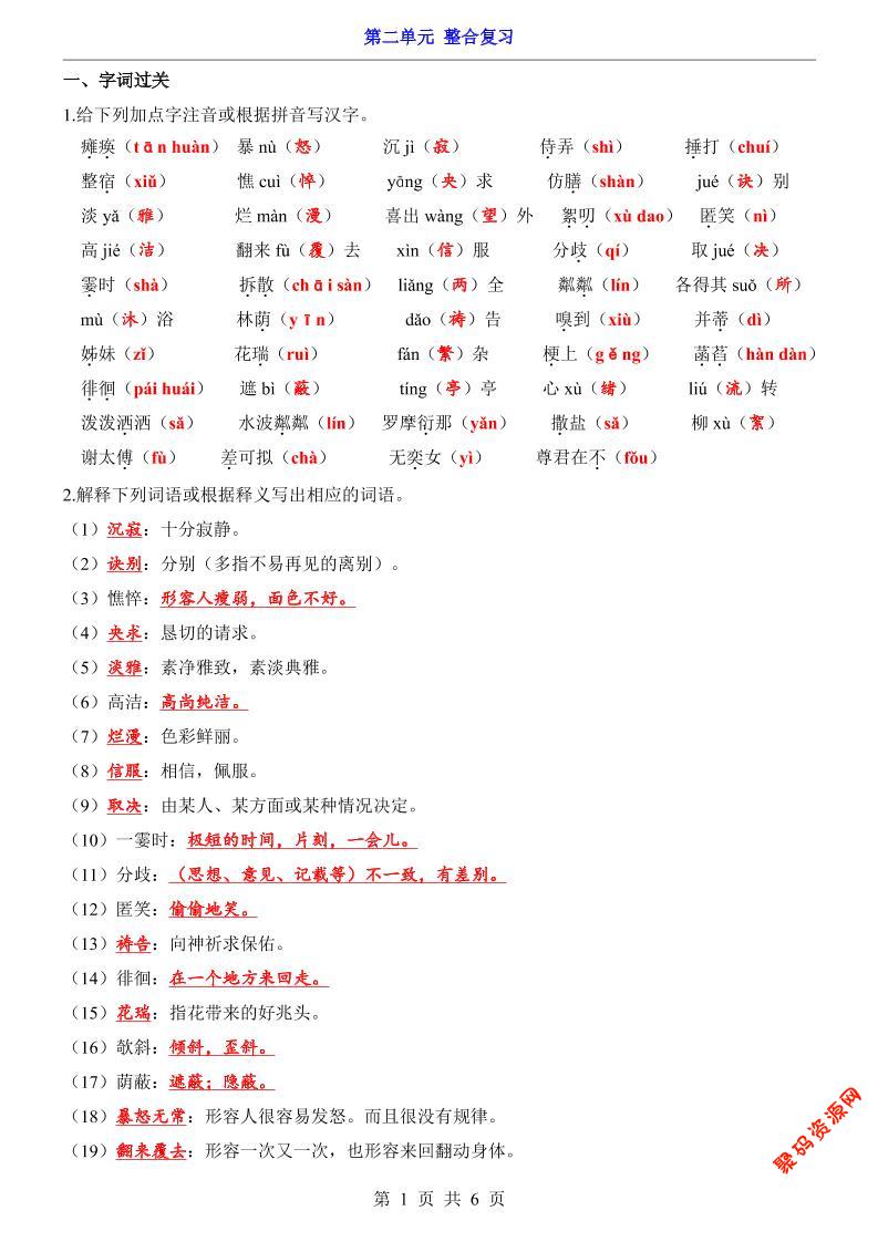 聚码网 七年级 七年级上语文第2单元整合复习 http://www.appstore168.com/91760.html