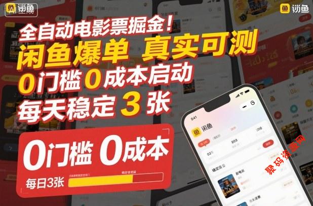聚码网 网赚项目 全自动电影票掘金,闲鱼爆单真实可测,0门槛0成本启动,每天稳定3张【揭秘】 http://www.appstore168.com/92237.html