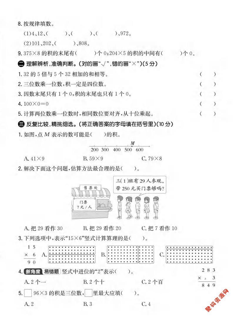 - 三年级上数学第五单元拔尖测试卷1《人教版》 2025-12-14