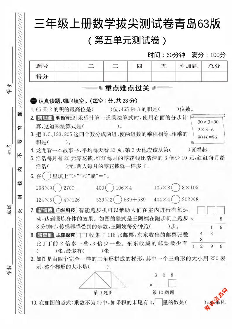 聚码网 三年级 三年级上数学第五单元拔尖测试卷3《青岛63版》1 http://www.appstore168.com/93329.html