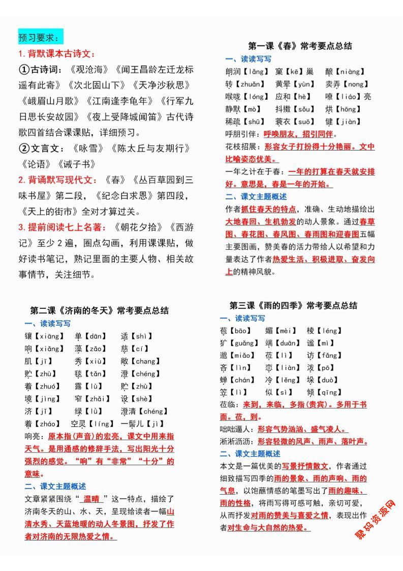- 七年级上语文全册基础知识点总结 2025-12-14