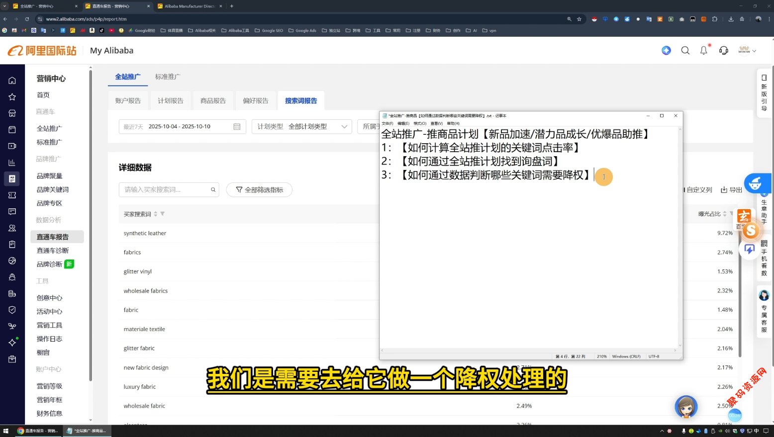 │ 8全站推广—推商品计划如何计算关键词点击率找询盘词判断哪些关键词需要降权