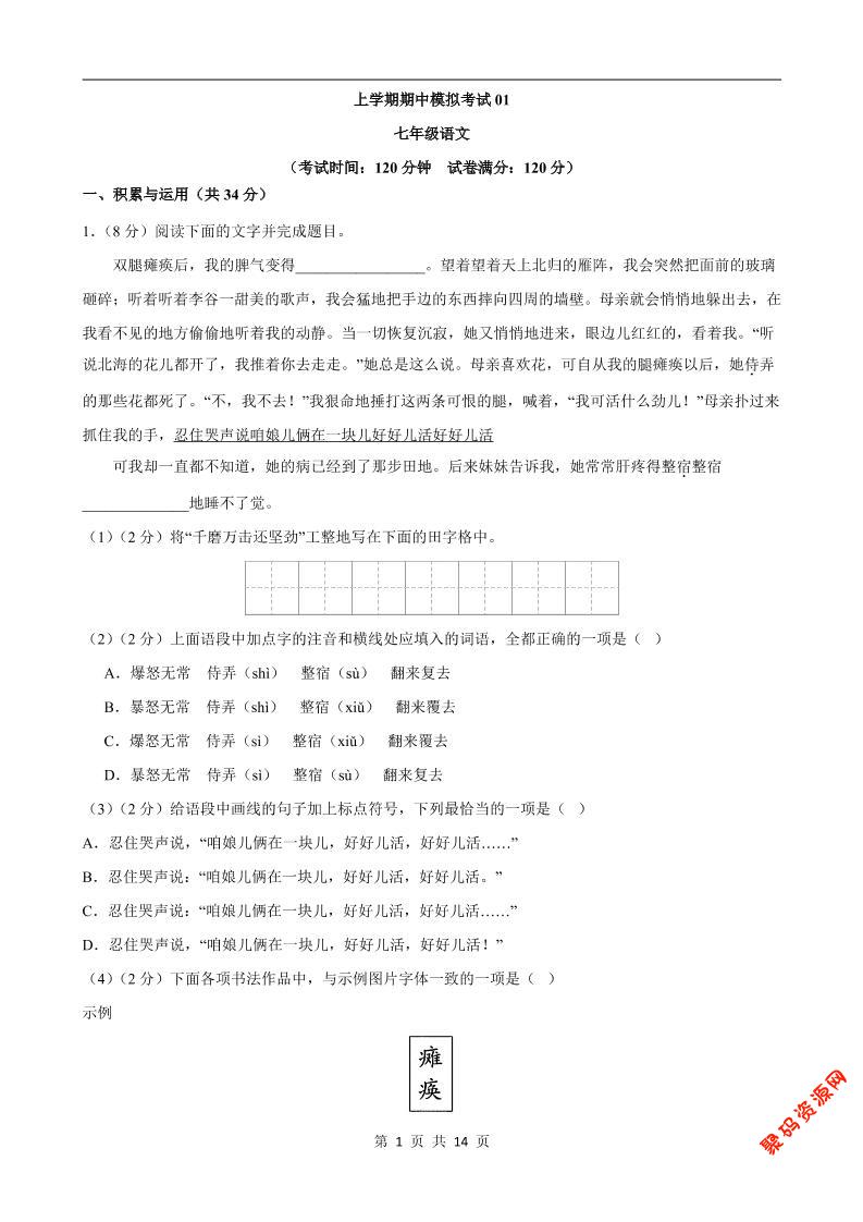 - 七年级上语文全册基础知识点总结 2025-12-14
