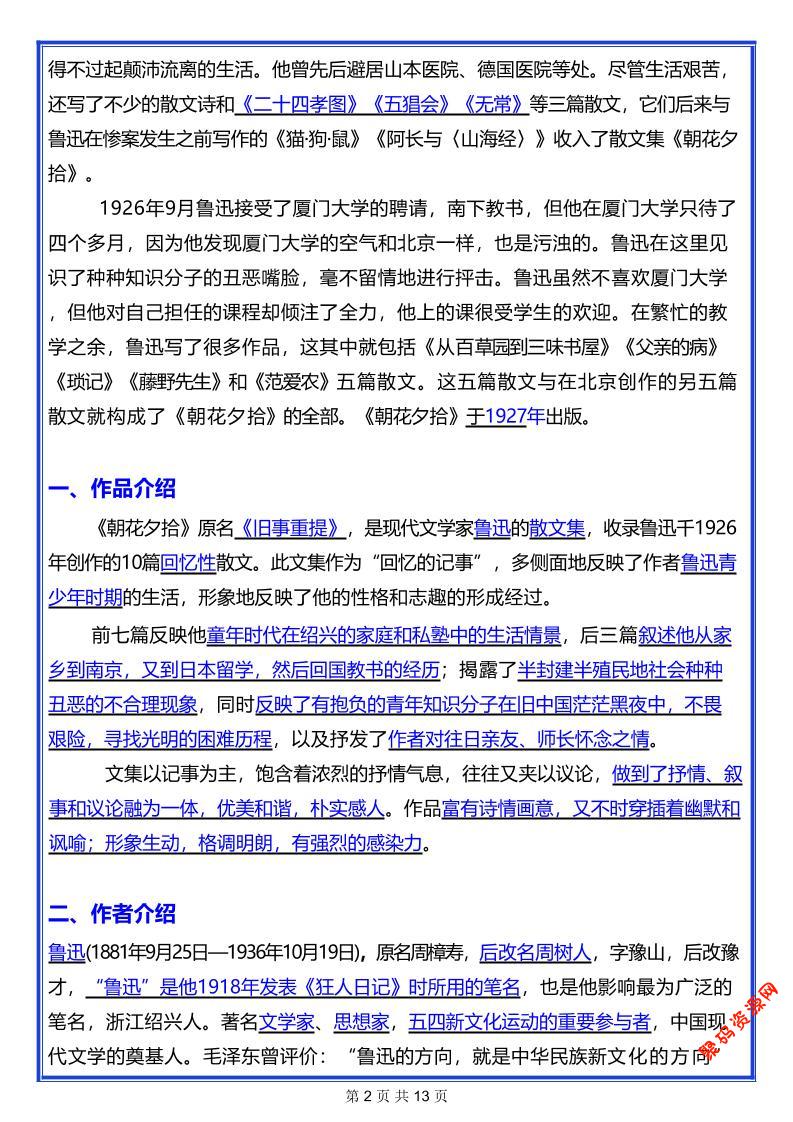 - 七年级上语文名著《朝花夕拾》考点汇总 2025-11-24