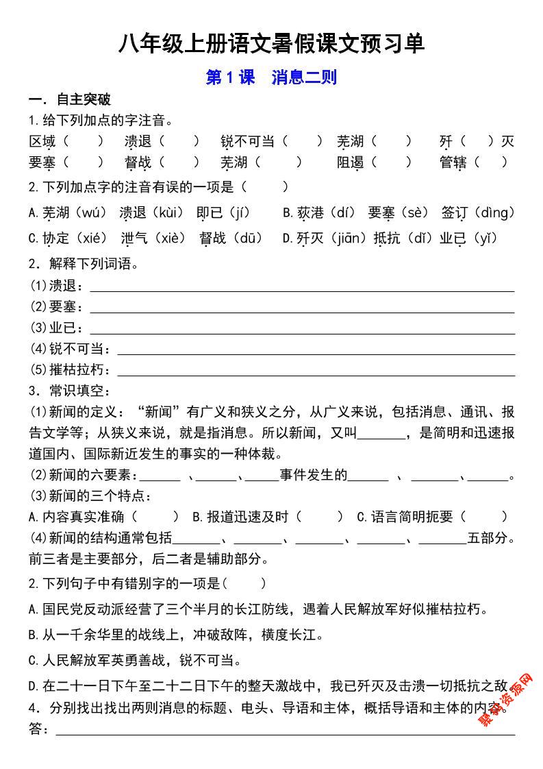 - 八年级上语文第1单元(知识梳理)-知识点 2025-11-29