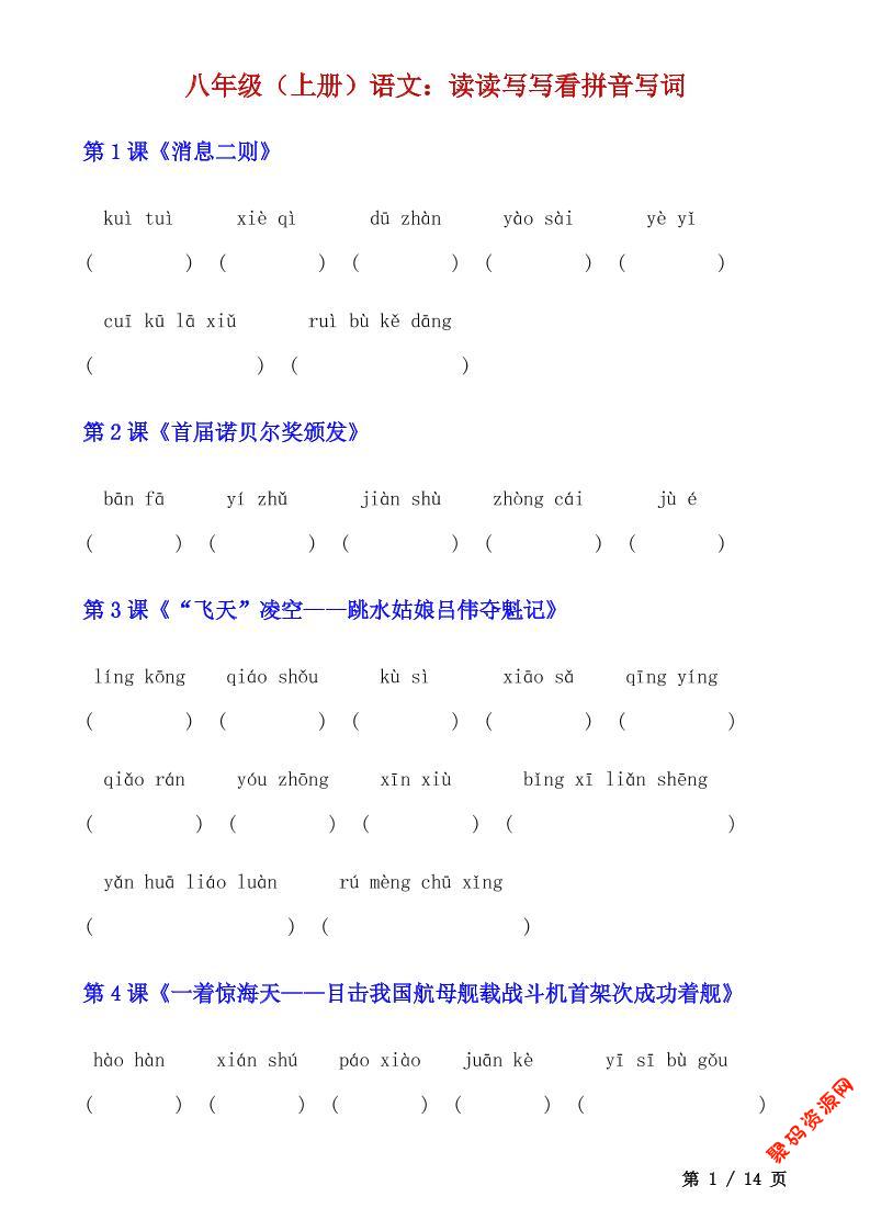 聚码网 八年级 八年级上语文读读写写看拼音写词 http://www.appstore168.com/95190.html