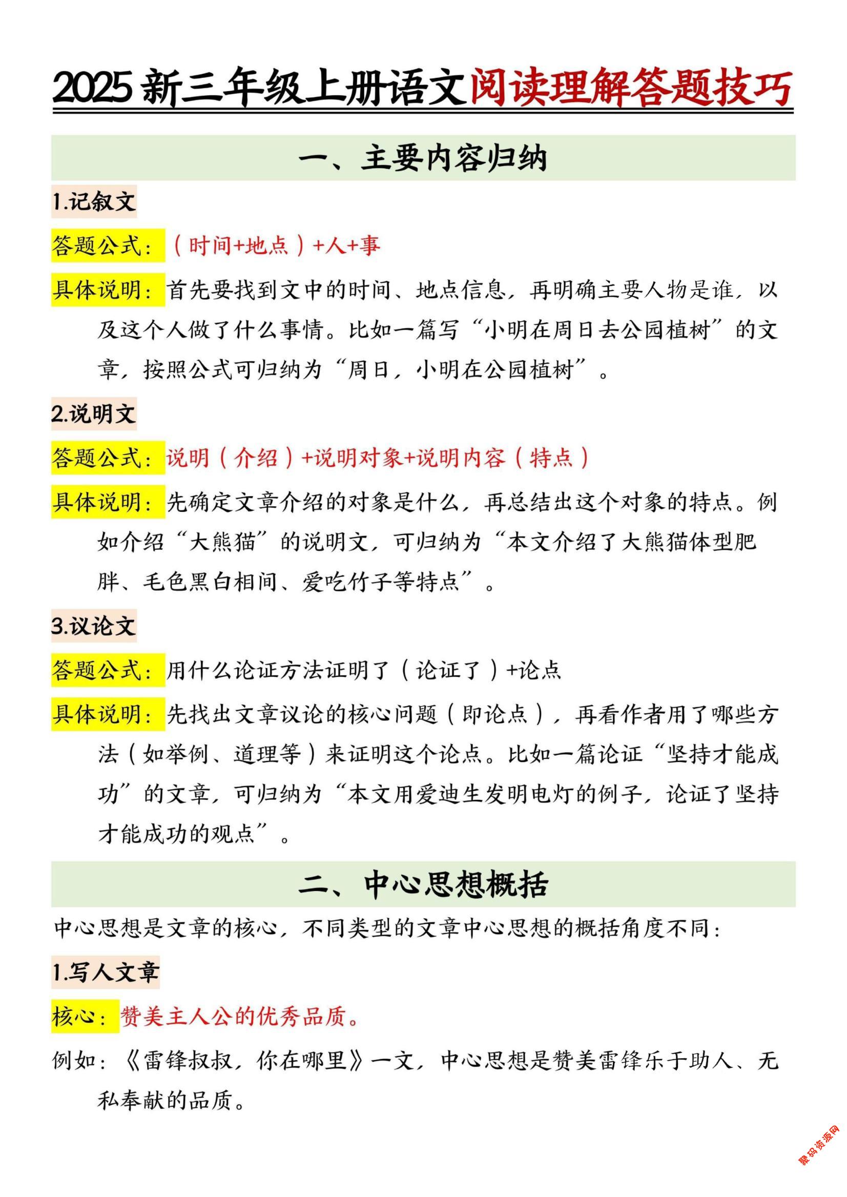 聚码网 三年级 25新三上语文阅读理解答题技巧(7页)记叙文 http://www.appstore168.com/95296.html