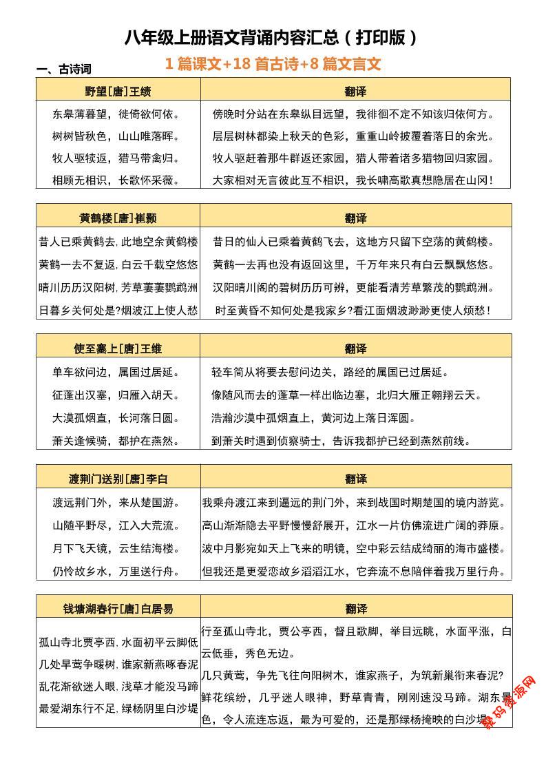 聚码网 八年级 八年级上语文背诵古诗、文言文附翻译 http://www.appstore168.com/95706.html