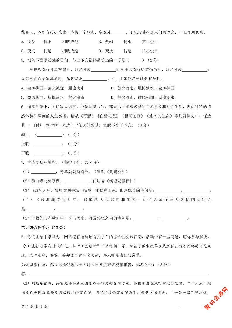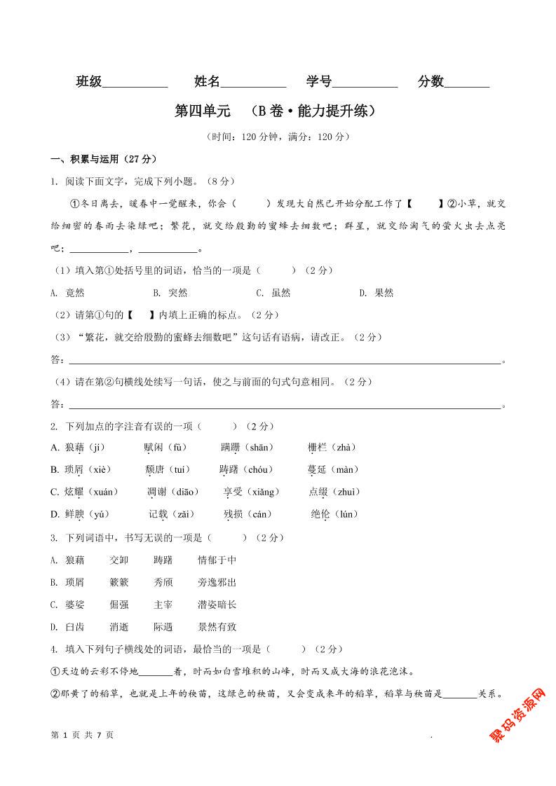 聚码网 八年级 八年级上语文第四单元B卷提升卷 http://www.appstore168.com/95718.html