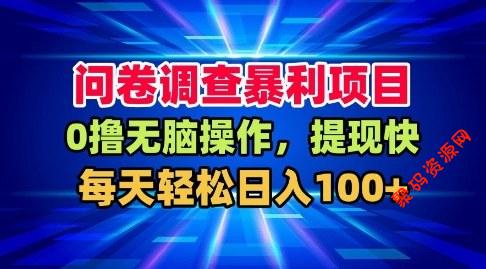 问卷调查暴利项目,0撸无脑操作,提现快,每天轻松日入100+【揭秘】