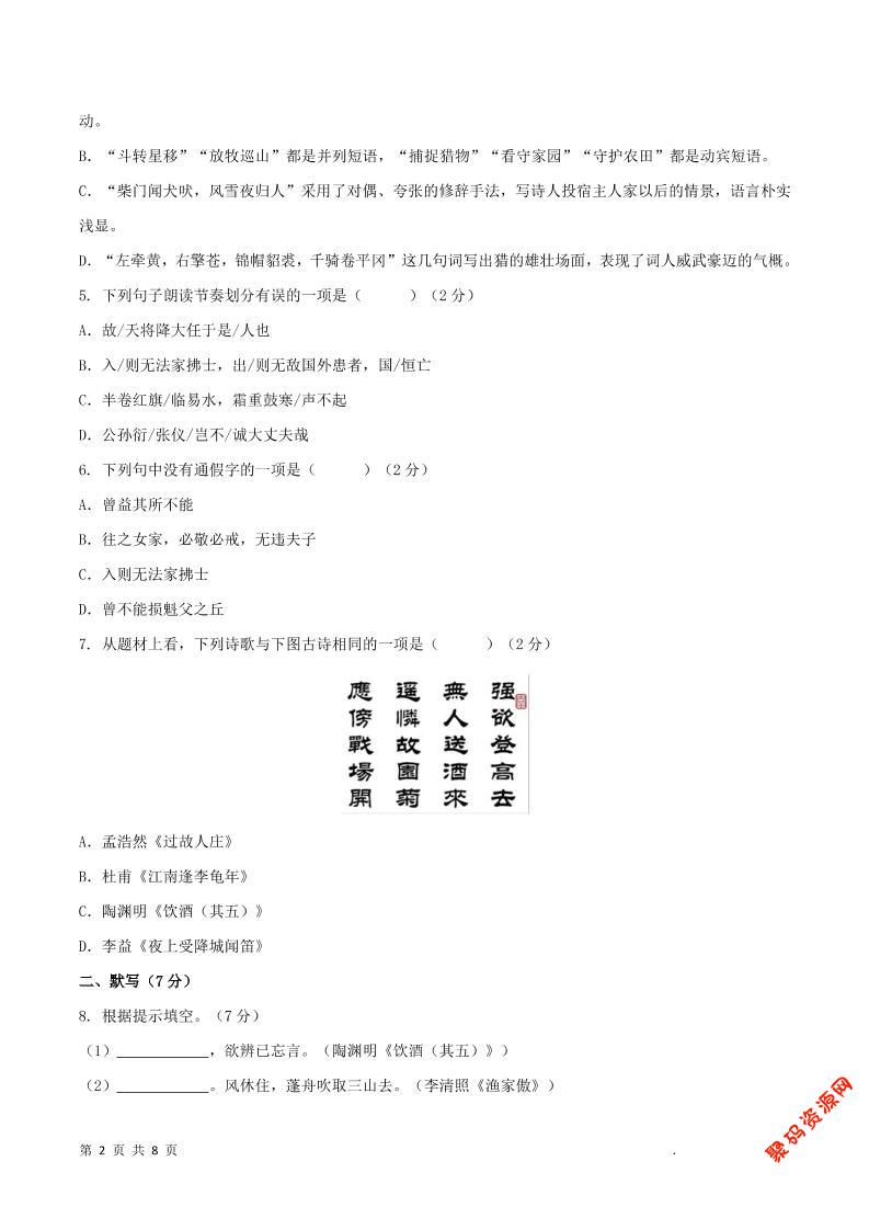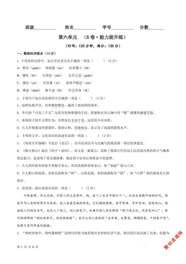 聚码网 八年级 八年级上语文第六单元B卷提升卷 http://www.appstore168.com/96060.html