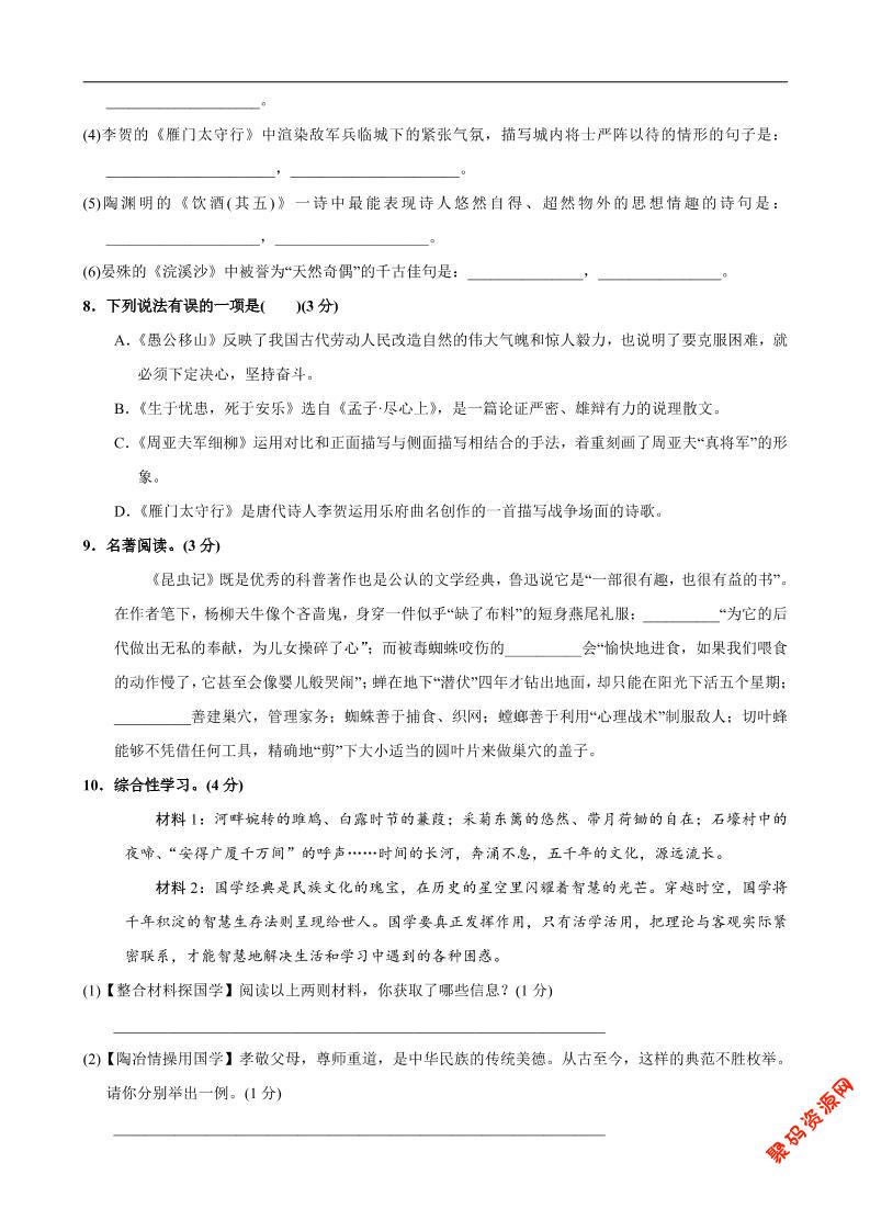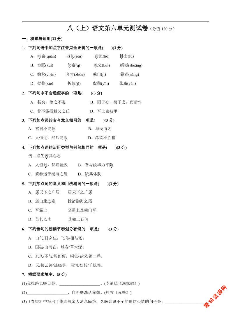聚码网 八年级 八年级上语文第6单元测试卷 http://www.appstore168.com/96212.html