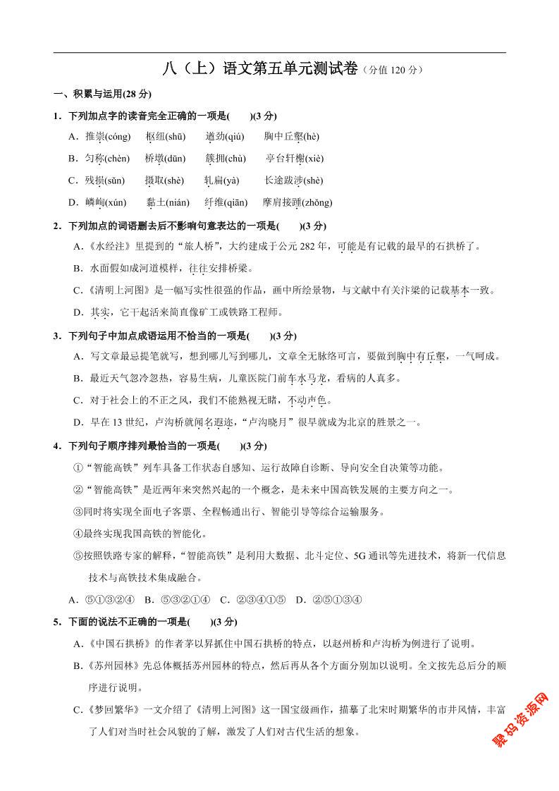 - 八年级上语文第5单元(知识梳理)-知识点 2025-11-29