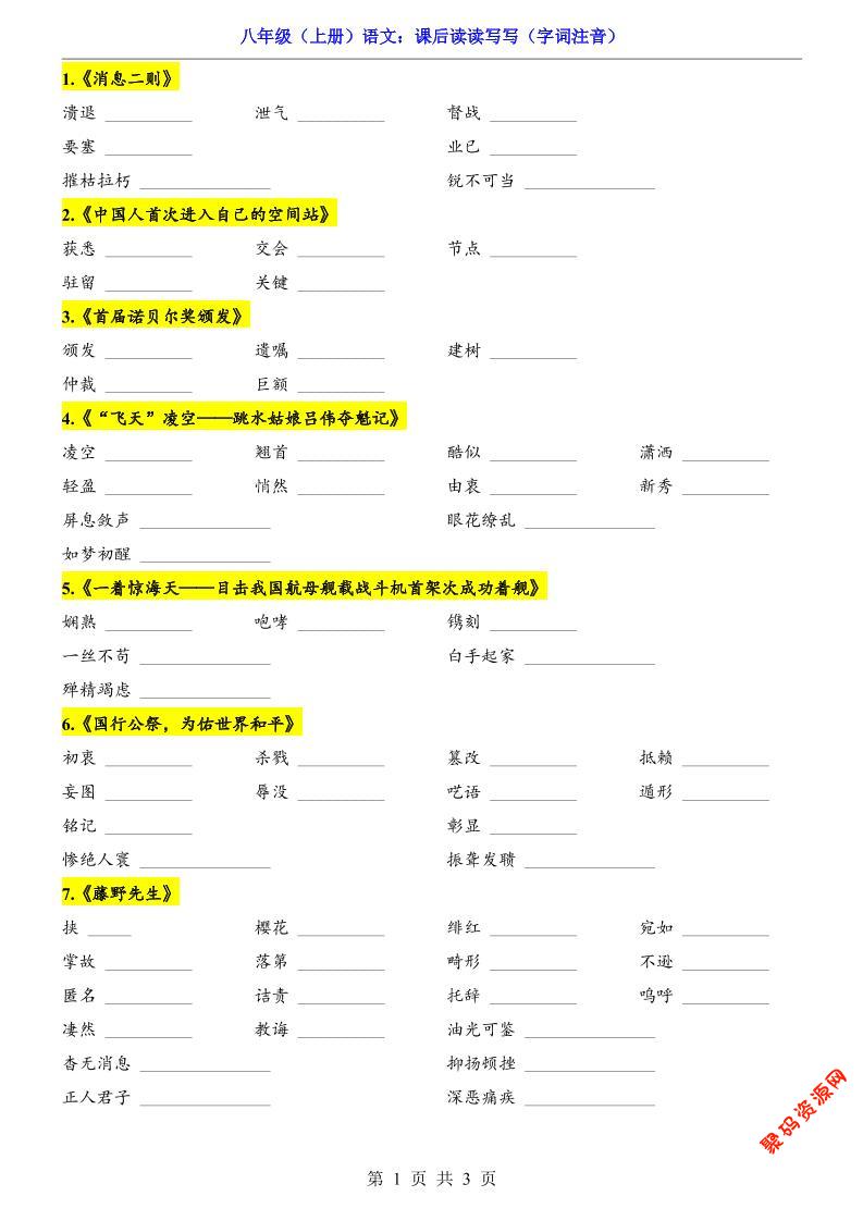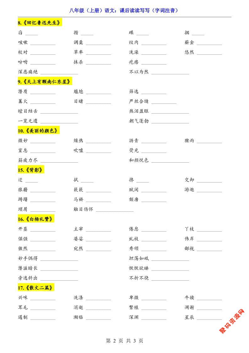 聚码网 八年级 新八年级上语文课后读读写写(字词注音) http://www.appstore168.com/96489.html