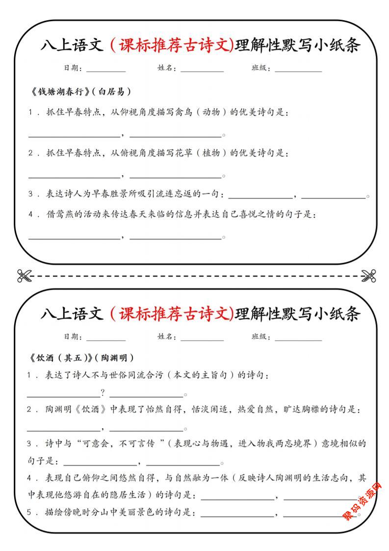 聚码网 八年级 新八年级上语文理解性默写小纸条 http://www.appstore168.com/96495.html