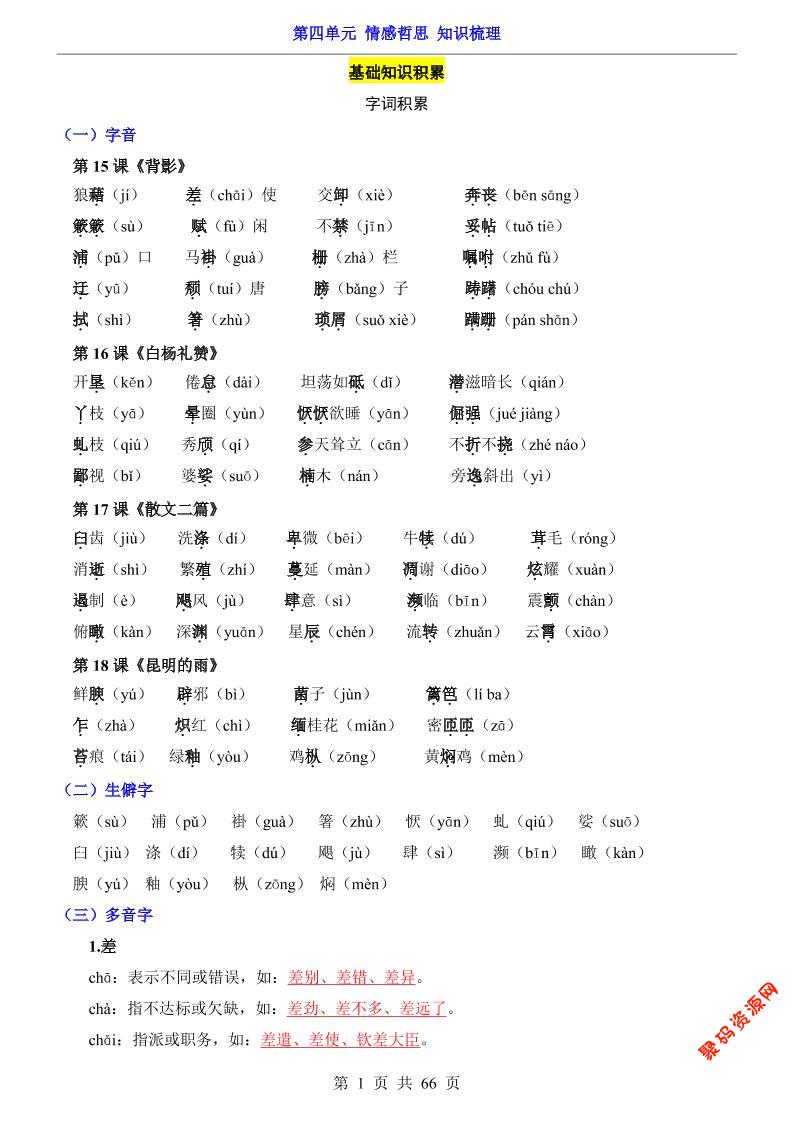 - 八年级上语文第1单元(知识梳理)-知识点 2025-11-29
