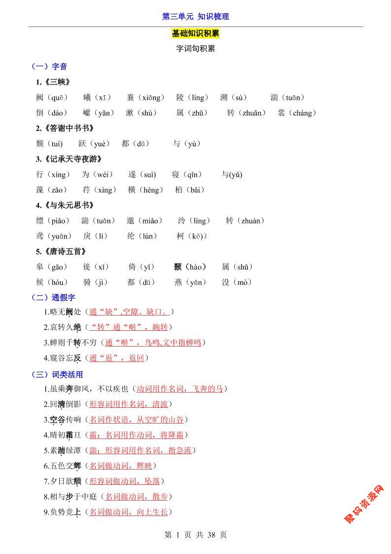 - 八年级上语文第3单元(知识梳理)-知识点 2025-11-29