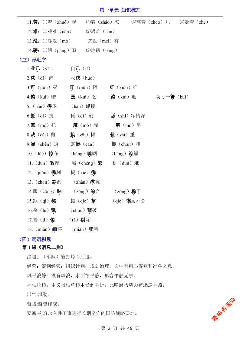 - 八年级上语文第2单元(知识梳理)-知识点 2025-11-30