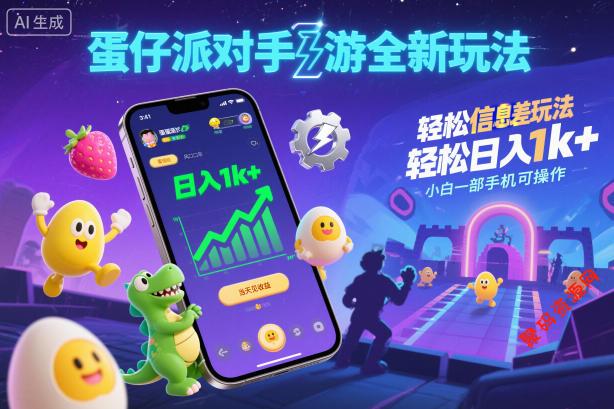 蛋仔派对手游全新玩法,轻松日入1k+,风口信息差玩法,当天见收益,小白一部手机可操作