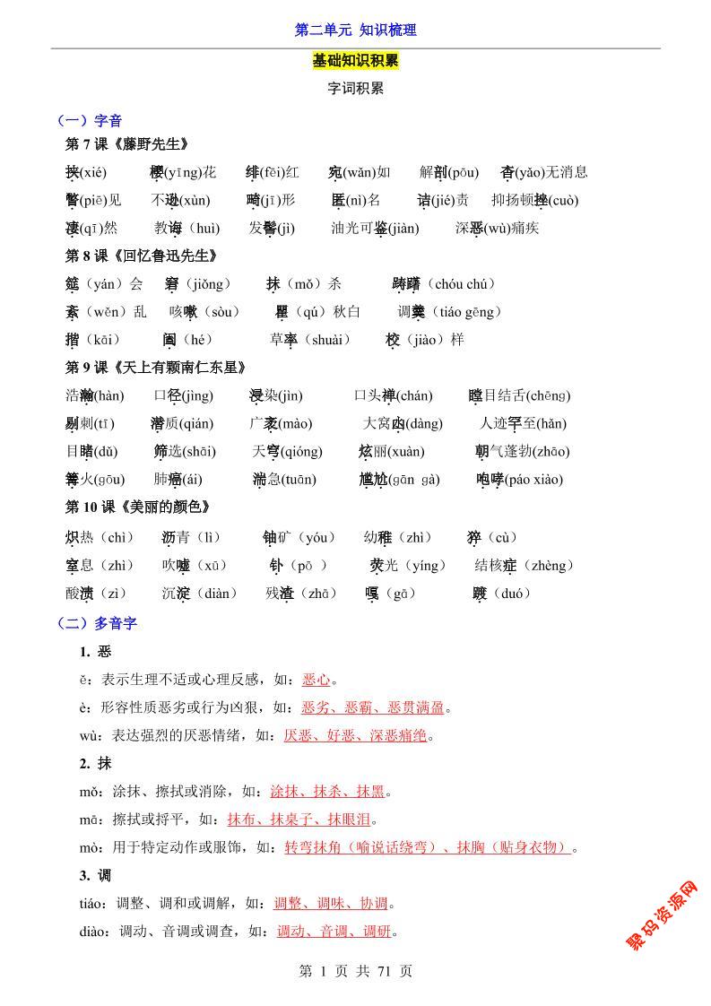 - 八年级上语文第2单元(知识梳理)-知识点 2025-11-30