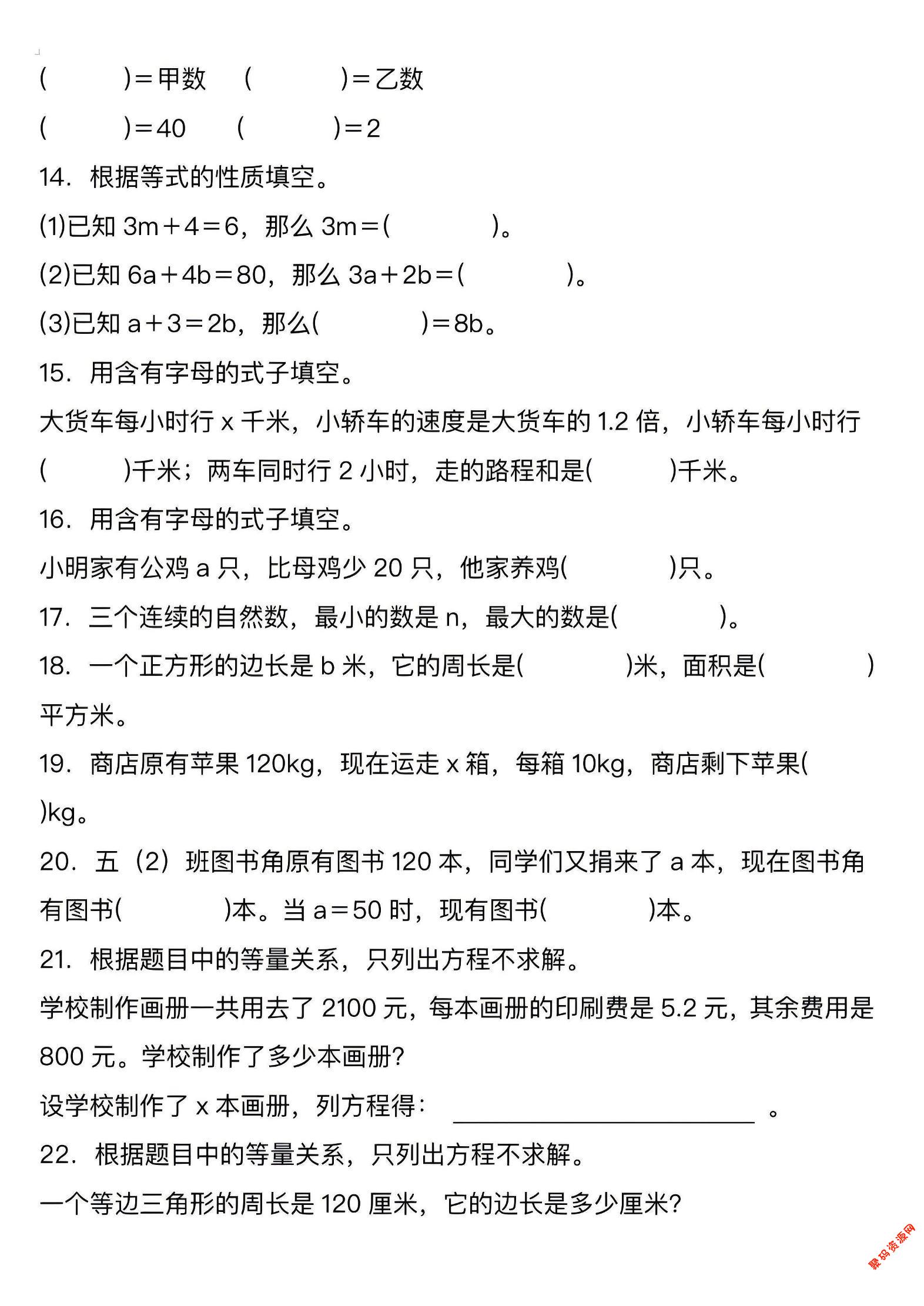 聚码网 五年级 五年级上数学简易方程专项强化练习 http://www.appstore168.com/97194.html
