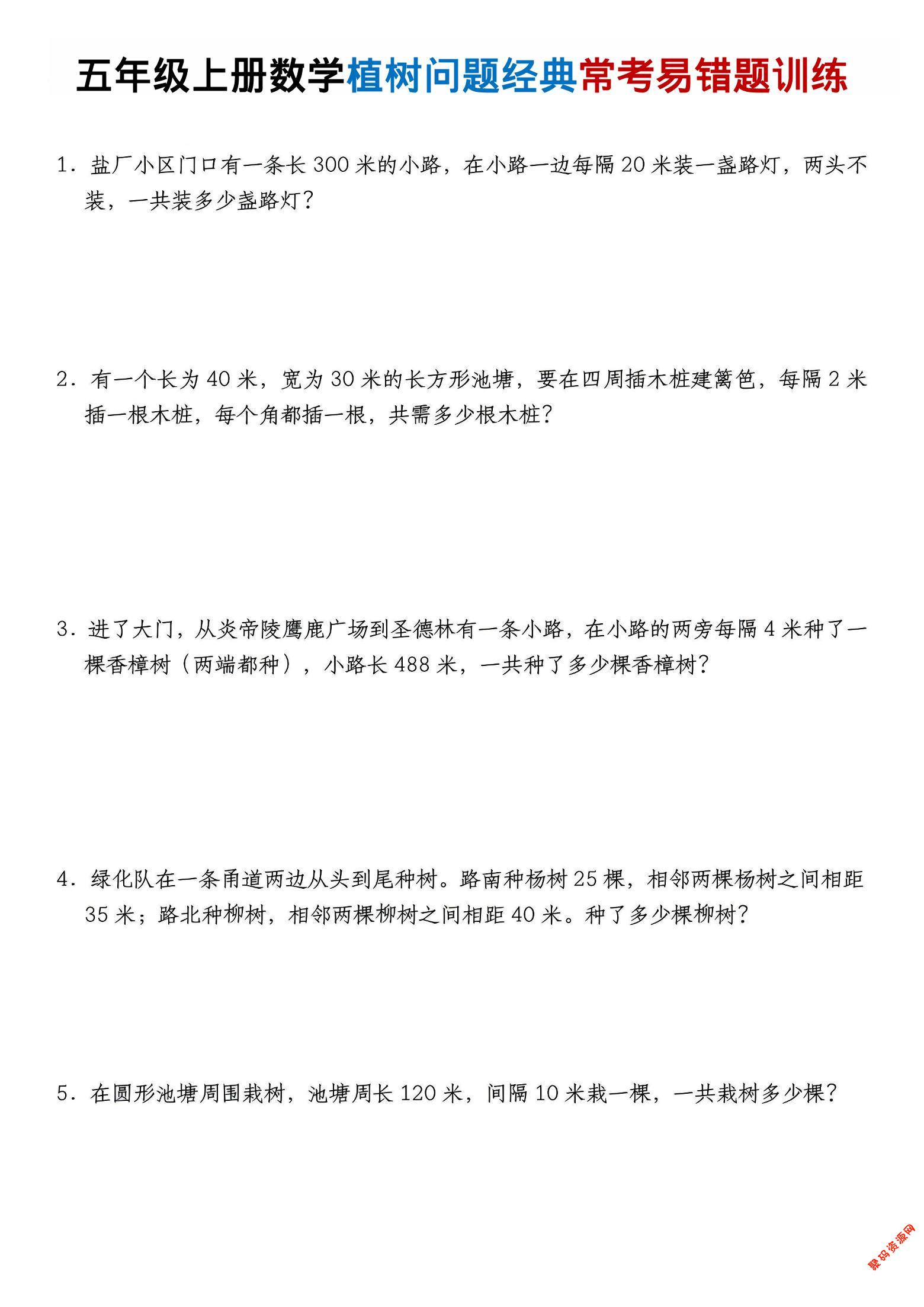 聚码网 五年级 五年级上数学植树问题经典常考易错题训练 http://www.appstore168.com/97202.html