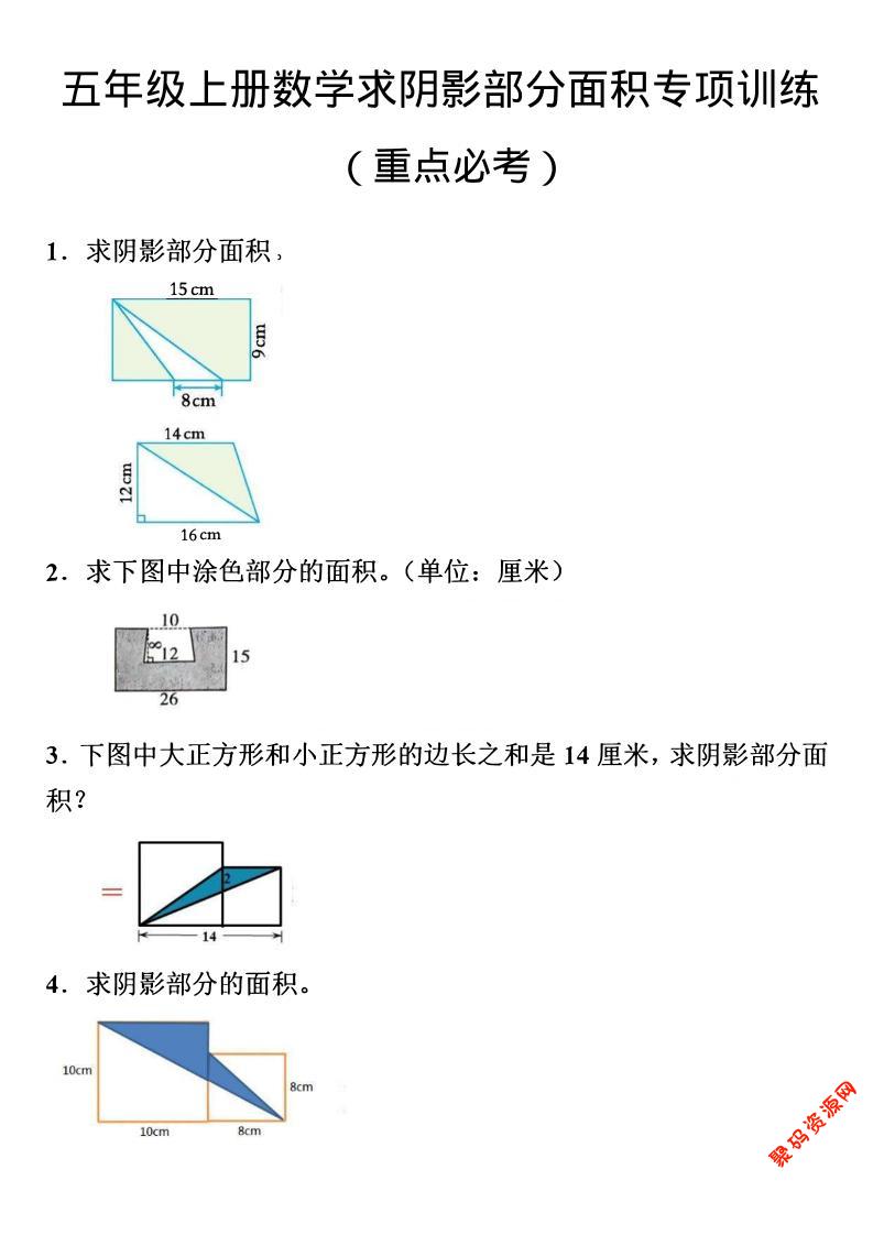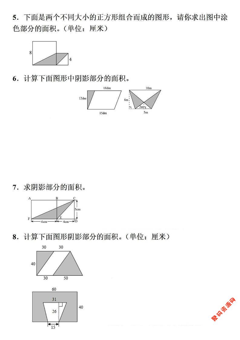 聚码网 五年级 五年级上数学数学阴影面积专项训练 http://www.appstore168.com/97205.html