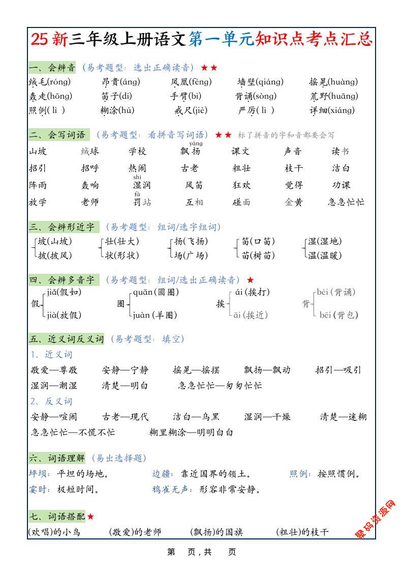 聚码网 三年级 25新三上语文1-8单元知识点考点汇总(24页) http://www.appstore168.com/97299.html