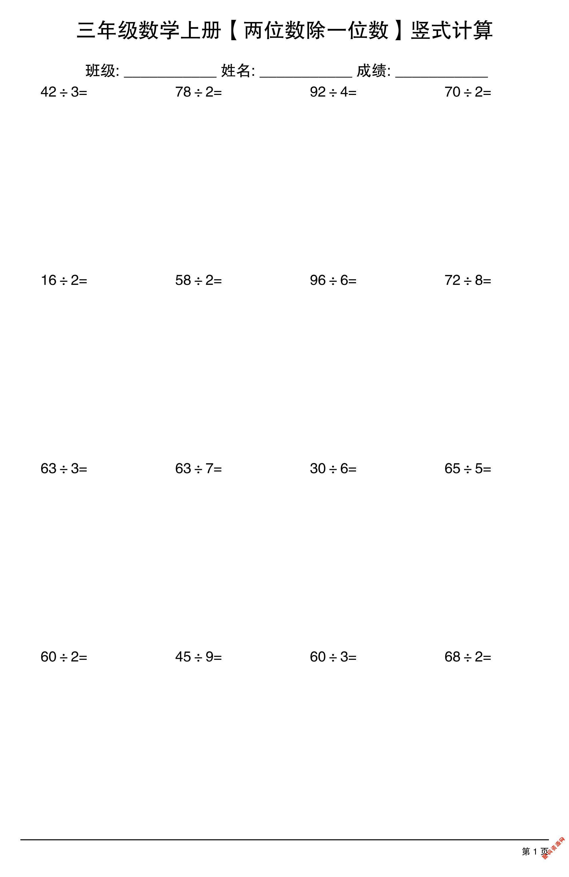 聚码网 三年级 三上数学【两位数除一位数】竖式计算 http://www.appstore168.com/97354.html