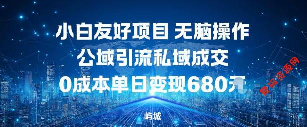 小白友好项目,无脑操作,公域引流私域成交,0成本单日变现680米