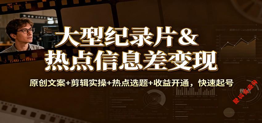 聚码网 视频教程 大型纪录片&热点信息差变现:原创文案+剪辑实操+热点选题+收益开通,快速起号 http://www.appstore168.com/97435.html