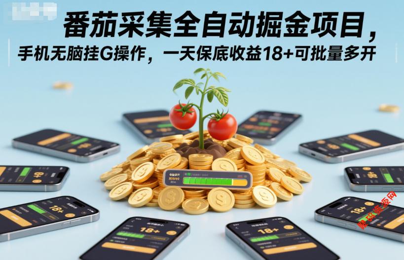 番茄采集全自动掘金项目,手机无脑挂G操作,一天保底收益18+可批量多开【揭秘】
