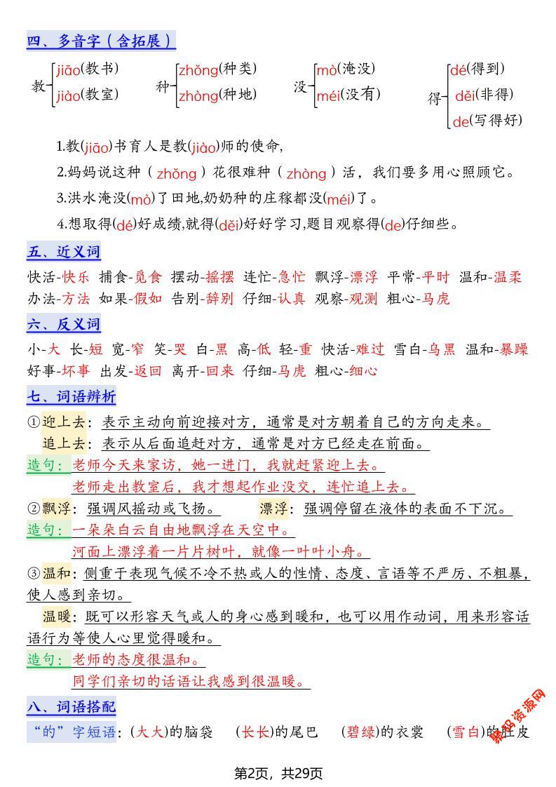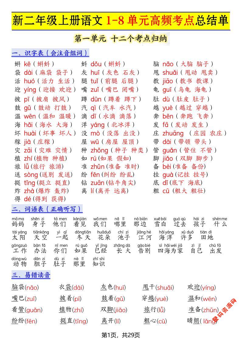 聚码网 二年级 新二上语文1-8单元高频考点总结单(十二个考点归纳)29页 http://www.appstore168.com/97704.html