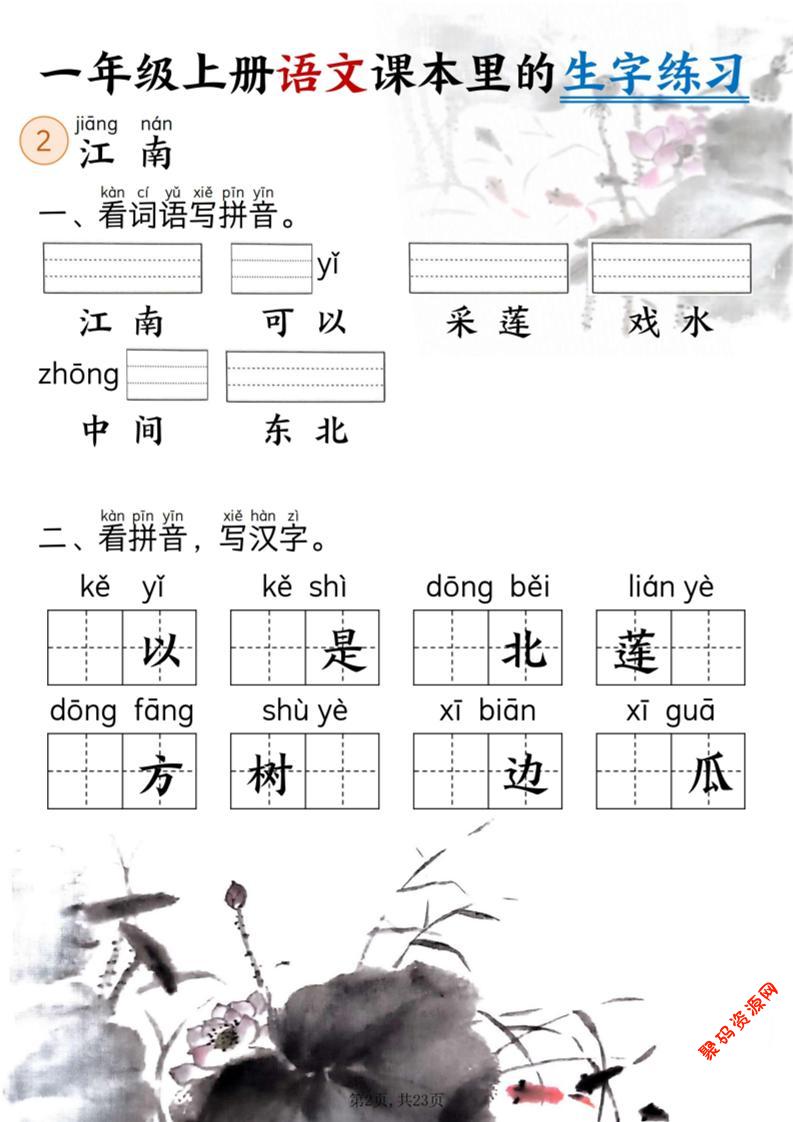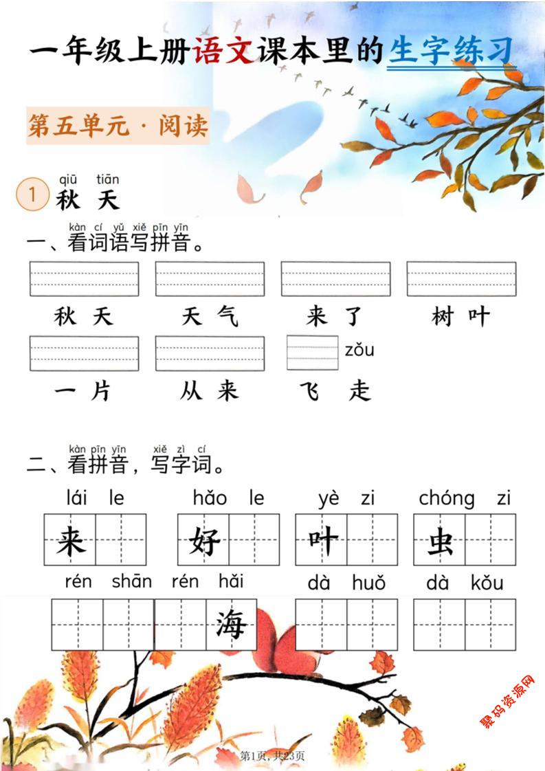 聚码网 一年级 新一上语文课本里的生字练习(5-8单元看拼音写词语)含答案23页 http://www.appstore168.com/97723.html