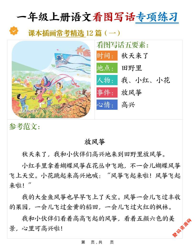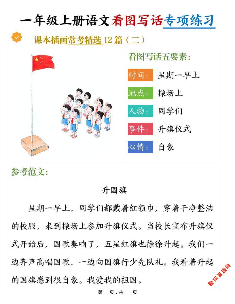聚码网 一年级 新一上语文看图写话专项练习常考精选12篇(含范文24页) http://www.appstore168.com/97726.html