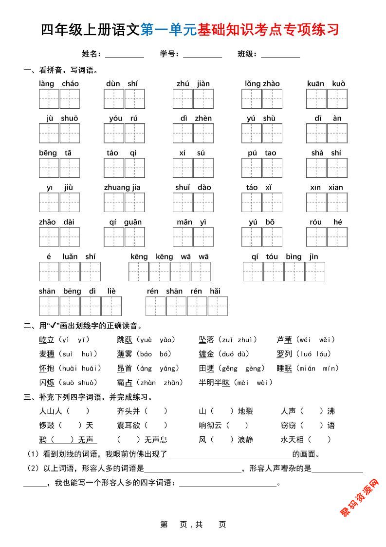 聚码网 四年级 四上语文1-8单元基础知识考点专项练习(含答案32页) http://www.appstore168.com/97735.html