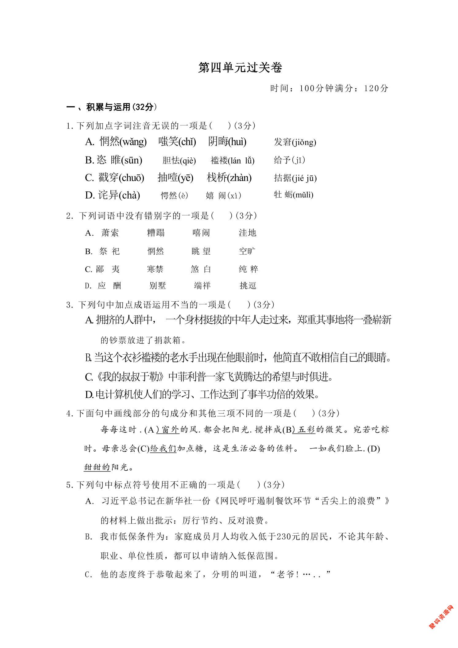 聚码网 九年级 九年级上语文第四单元过关卷 http://www.appstore168.com/97793.html