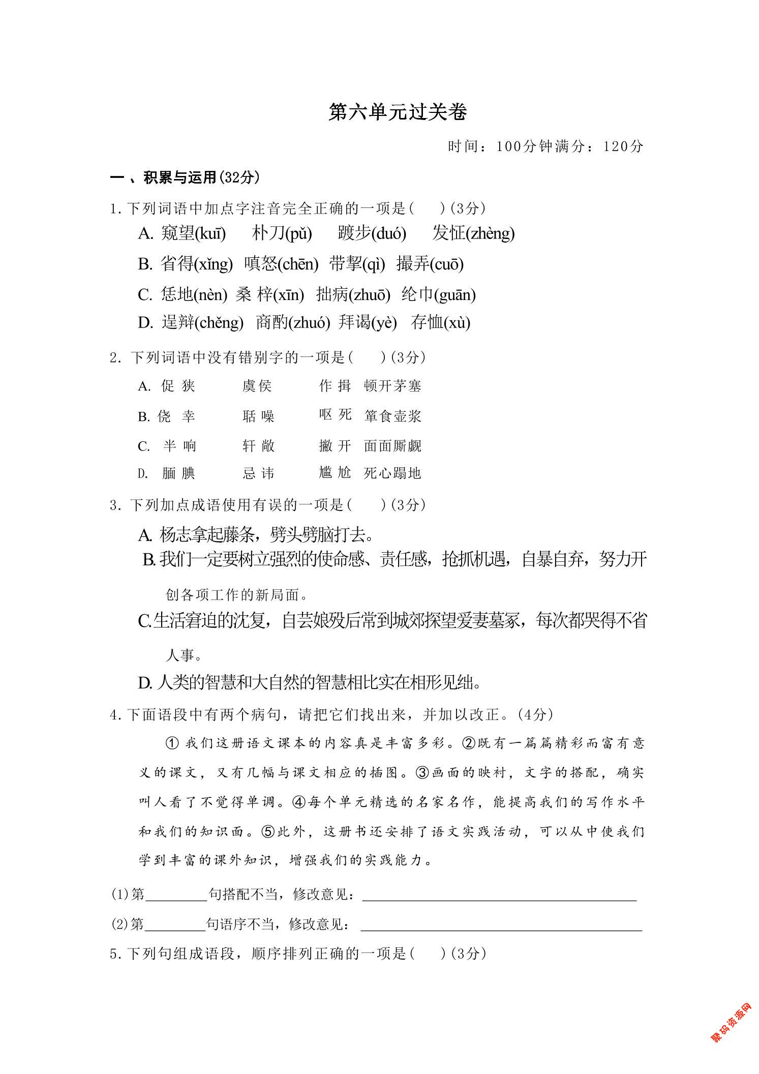 聚码网 九年级 九年级上语文第六单元过关卷 http://www.appstore168.com/97893.html