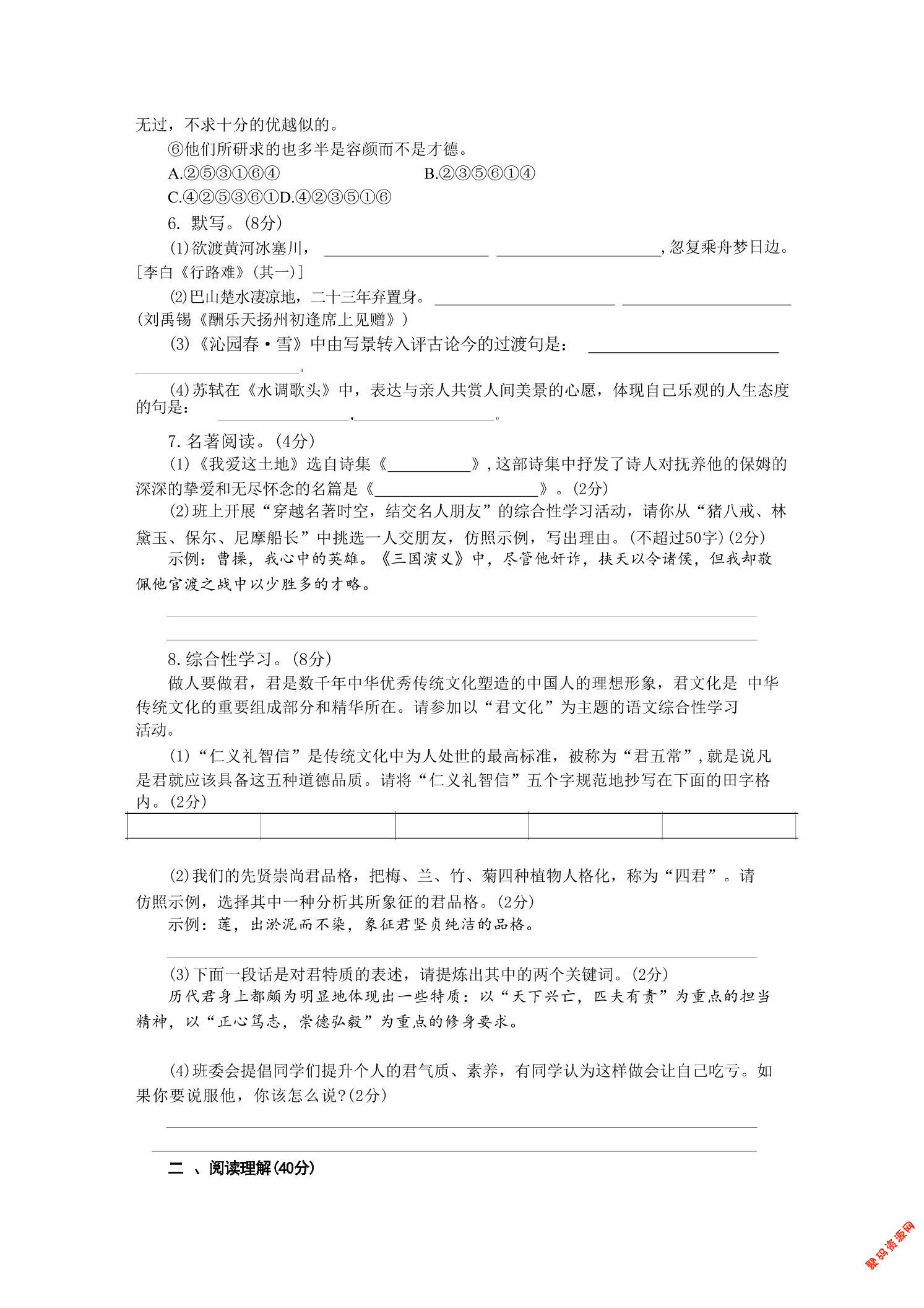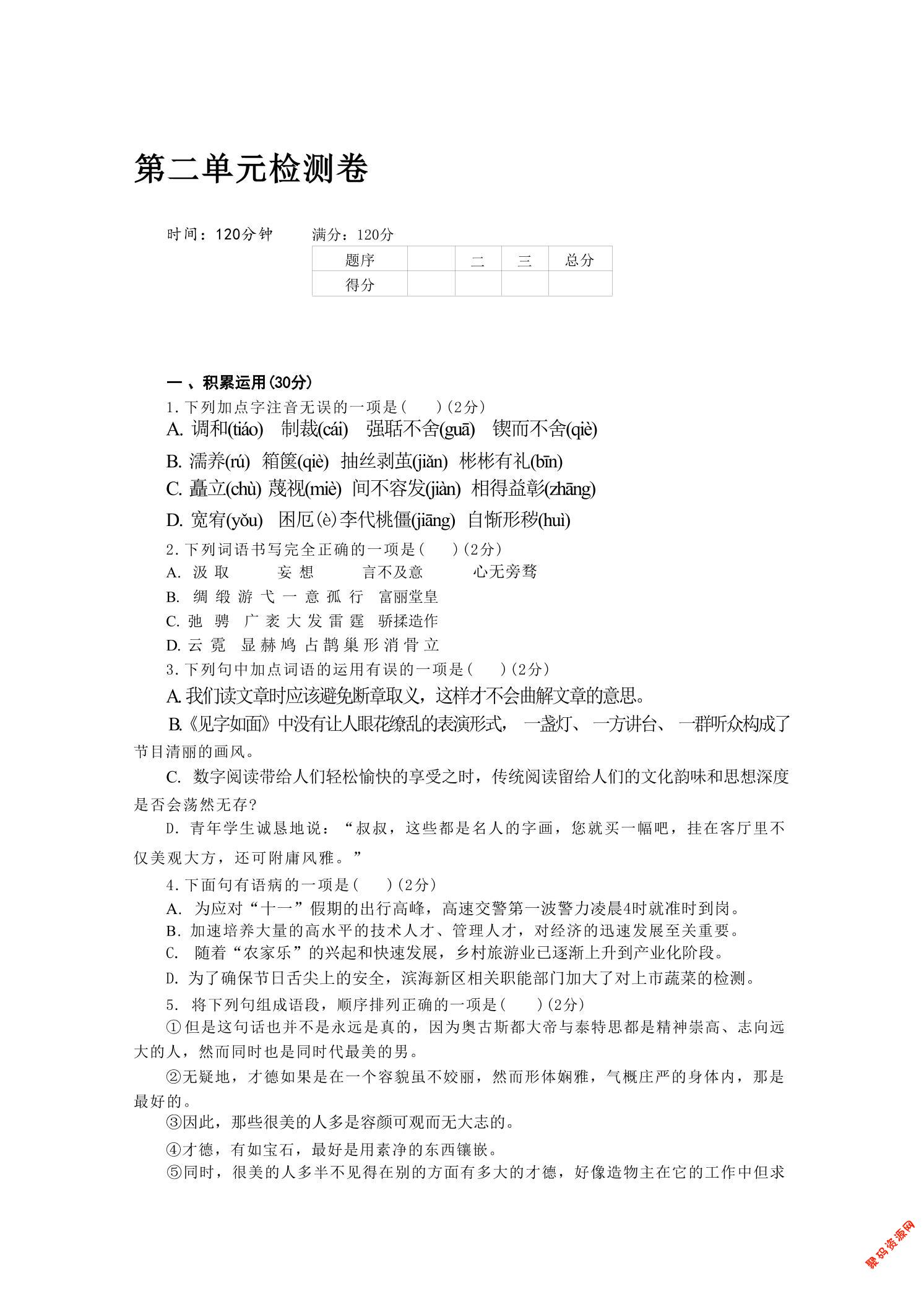 聚码网 九年级 九年级上语文第二单元检测卷 http://www.appstore168.com/97982.html