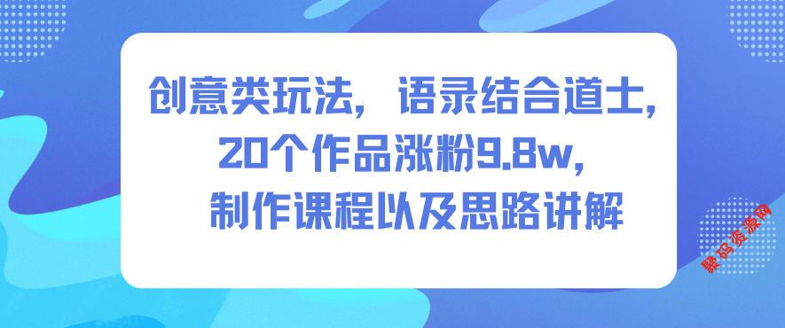 聚码网 私域引流 创意类玩法,语录结合道士,20个作品涨粉9.8w,制作课程以及思路讲解 http://www.appstore168.com/98172.html