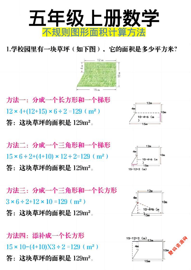 聚码网 五年级 《五年级上册数学不规则图形面积计算方法》五年级上数学 http://www.appstore168.com/98330.html
