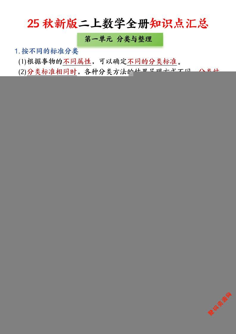 聚码网 二年级 25新二上数学全册知识点+高频考点+综合练习(全册1-5单元)45页 http://www.appstore168.com/98450.html