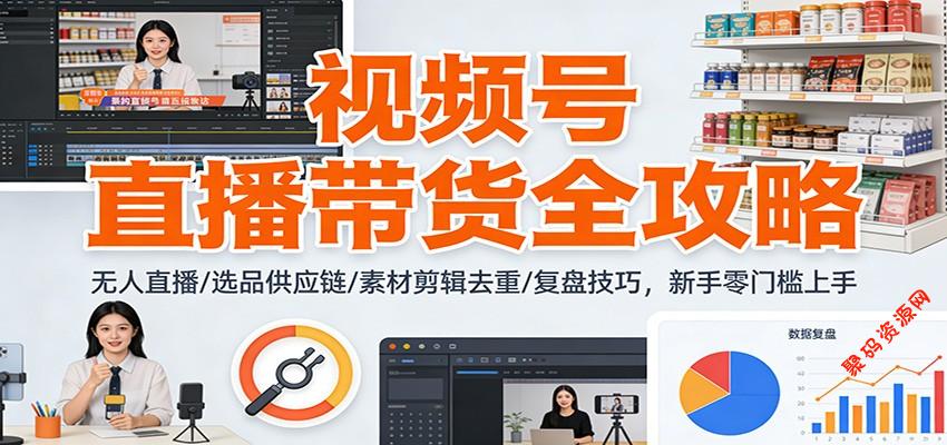 本课程是视频号带货从0到1的实战训练营,涵盖直播运营、无人直播、素材制作与选品变现全链路。课程从直播声音画面优化、互动逼单技巧切入,系统讲解无人直播搭建、供应链对接、素材获取去重、剪辑方法及书单号美食号等细分玩法,通过多次实战复盘帮助学员掌握低成本在家创业的完整带货路径。